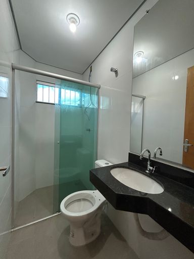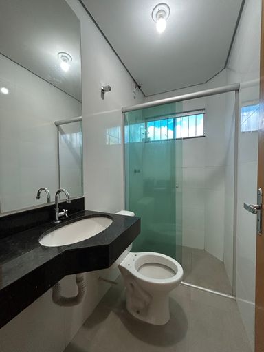Banheiro social com box, espelho
