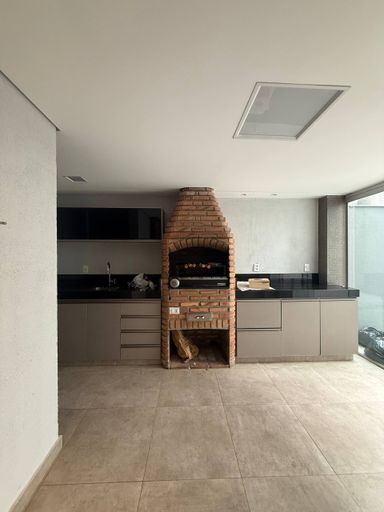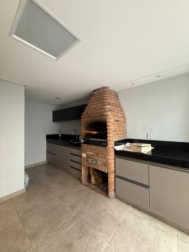 Área privativa externa com parte coberta e parte aberta, espaço gourmet com churrasqueira e varanda.