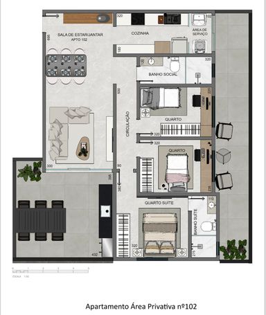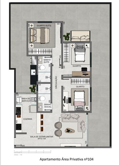 Apartamentos 3 quartos, sendo 1 suíte com gás canalizado;