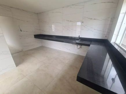 - Cozinha independente e ampla com extensa bancada em granito, cuba da pia em inox e revestimentos até o teto;