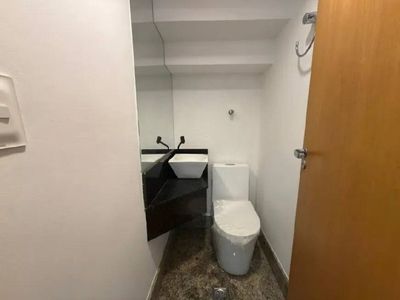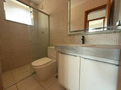 ✅Banheiro social com bancadas em granito e mármore, espelhos sobre as bancadas, armários planejados e box blindex;