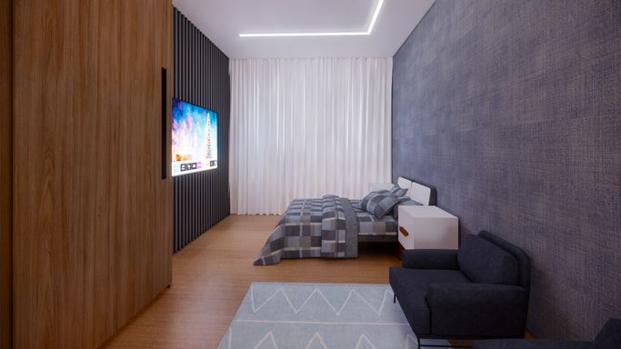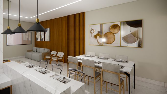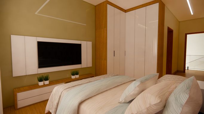 Banheiros das suítes com bancada em granito e cuba embutida;