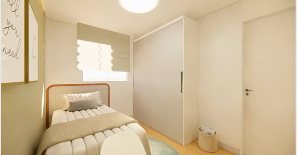 Torre única com 16 apartamentos (4 por andar), 3 quartos sendo 1 suíte, sala, cozinha e área de serviço coberta e separada da cozinha