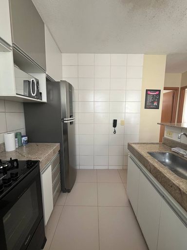 Cozinha com bancada em granito e armários planejados