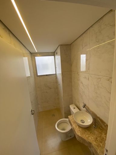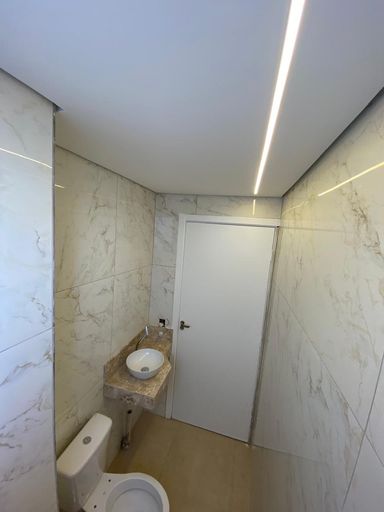 Banheiro social reformado e com bancada em mármore