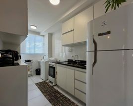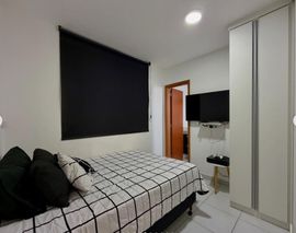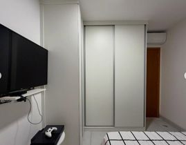 Quarto de casal (suíte) com planejados e ar-condicionado